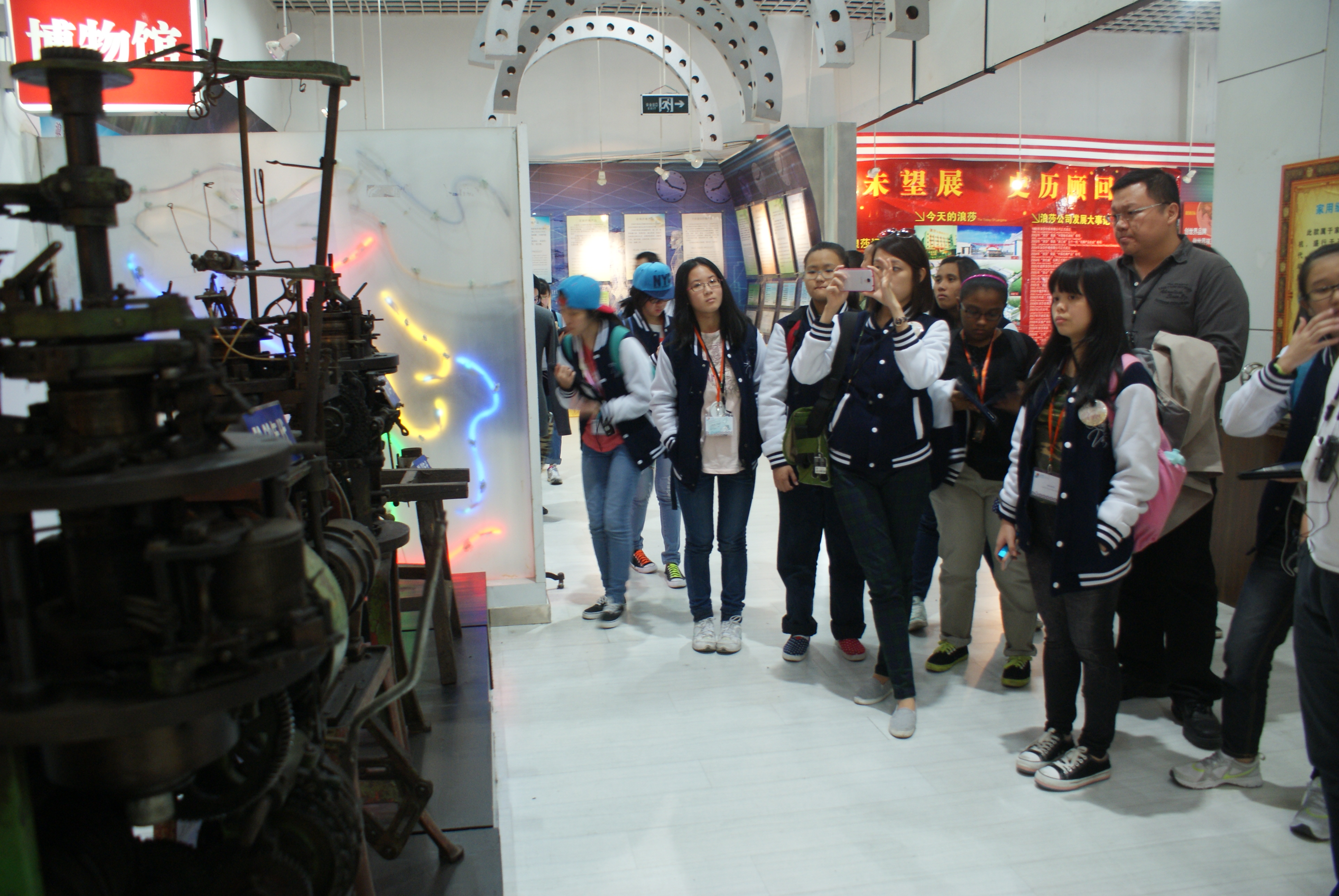 歐南中學(xué)生代表團(tuán)先來到了浪莎產(chǎn)品展覽中心。它由浪莎文化墻、浪莎科技館、浪莎博物館、浪莎樣品展示區(qū)、商品直銷區(qū)等部分組成。浪莎文化墻展示了義烏市場的演變和浪莎企業(yè)文化。其中,浪莎管理的“7個理念”,是精髓部分,尤其是一個目標(biāo)“爭創(chuàng)世界品牌產(chǎn)品”,兩個戰(zhàn)略“穩(wěn)扎國內(nèi)、拓寬國際”對浪莎的成長具有指導(dǎo)意義。