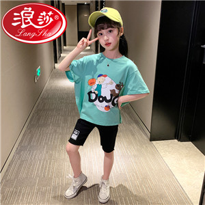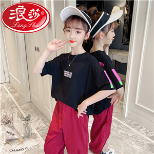 浪莎女童夏裝2021新款網紅洋氣兒童中大童短袖T恤女孩童裝夏季潮