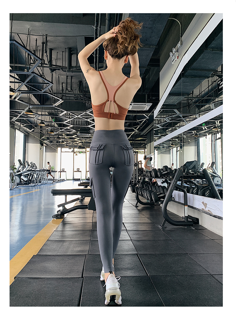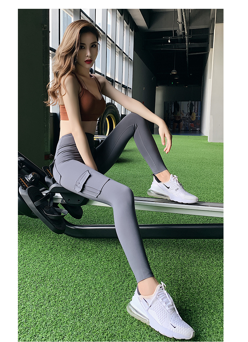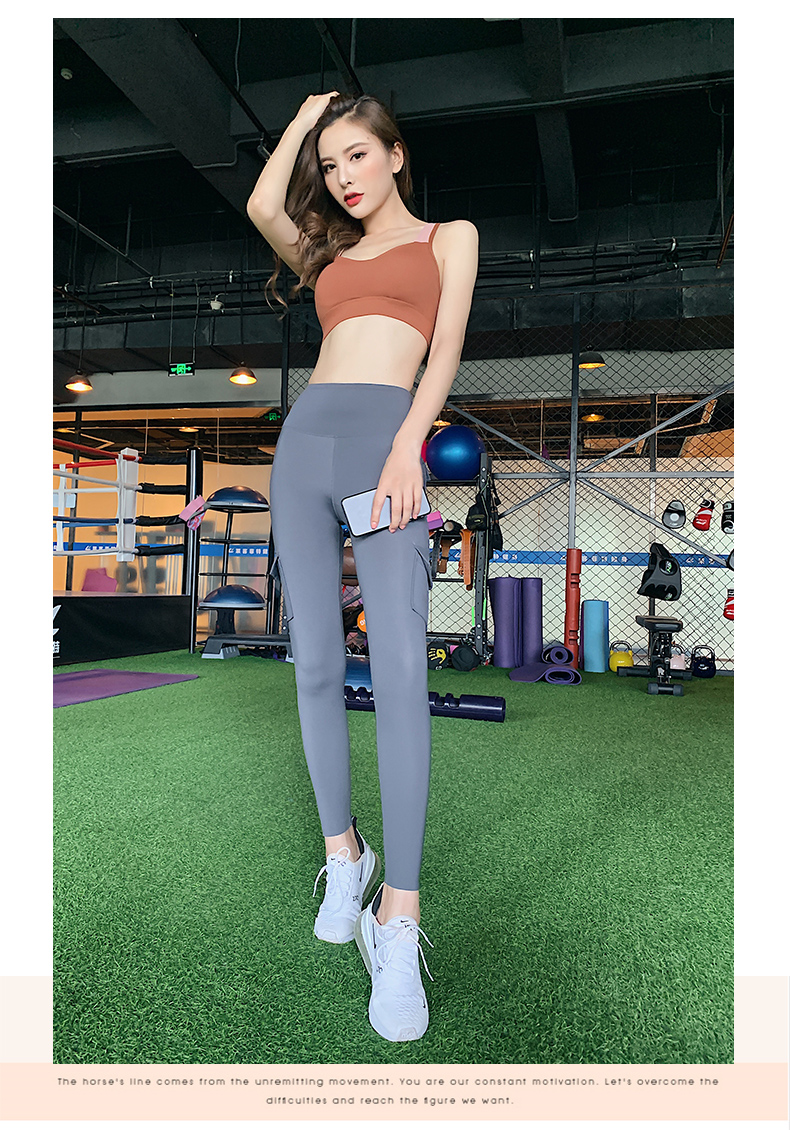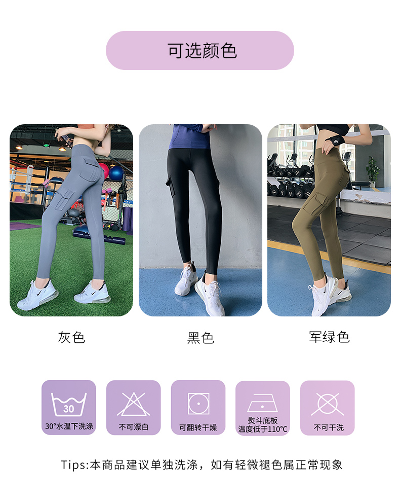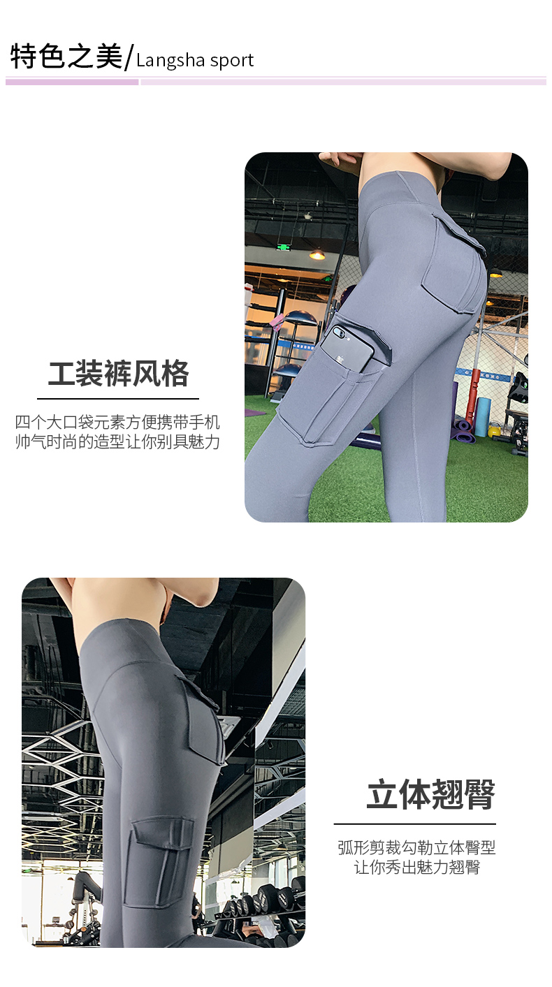 浪莎蜜桃健身褲女彈力緊身速干跑步運動褲提臀高腰收腹工裝瑜伽褲