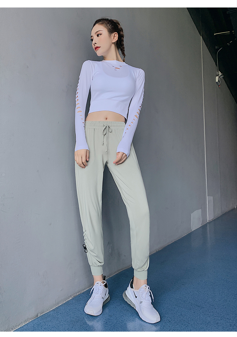 特價浪莎健身褲女寬松束腳收口跑步舞蹈薄款速干高腰瑜伽褲運動褲