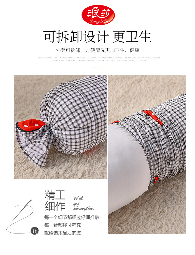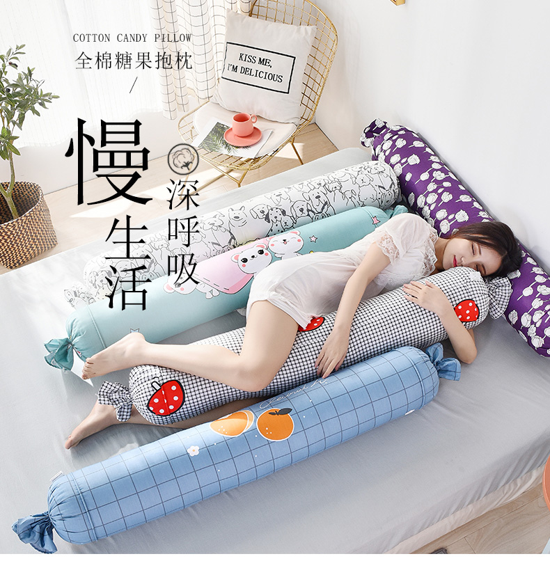 浪莎夏天純棉糖果圓柱枕頭夏季睡覺(jué)側(cè)睡夾腿抱枕長(zhǎng)條枕女生可拆洗